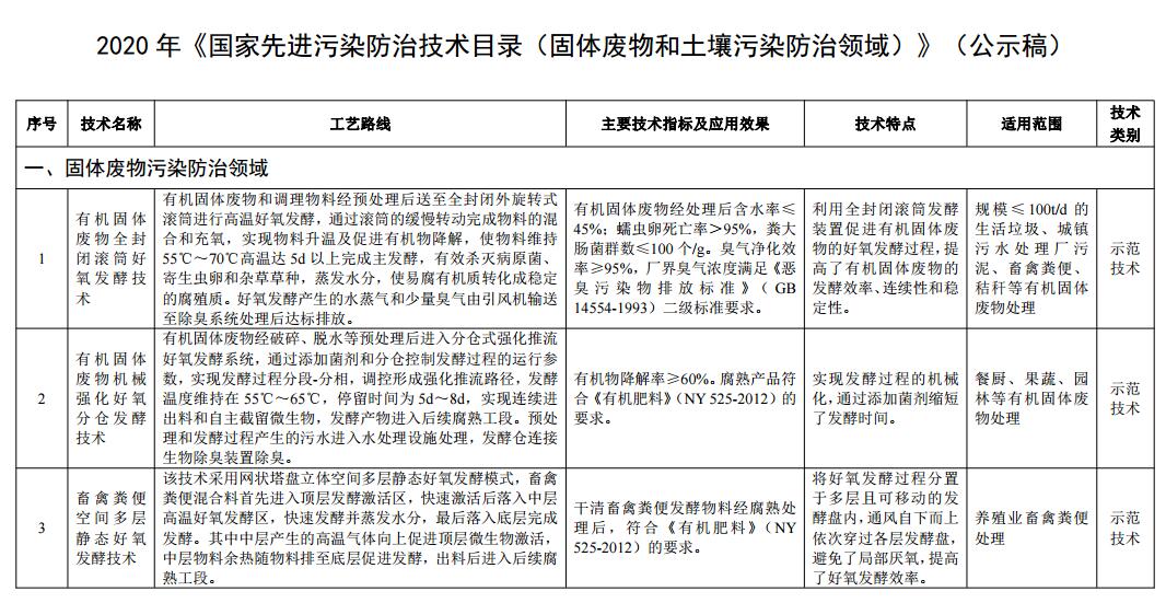 2020年國家先進(jìn)污染防治技術(shù)目錄(固體廢物和土壤污染防治領(lǐng)域)